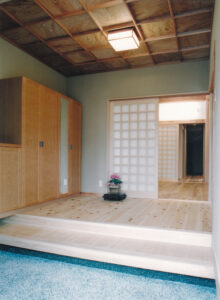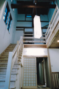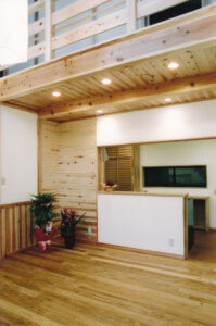 町家の典型的な敷地です。間口は狭く奥行きが長い。光が取り入れにくいので、風と光が入り込む間取りです。