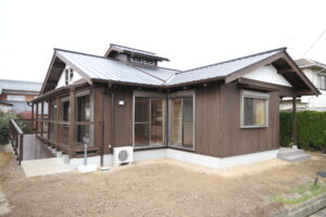 障害をもつ方の平屋建ての家。広いスロープから広い室内に入れ入れます。
