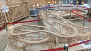 木レール‐1 0202年12月21日 最終更新日時 : 2026年1月21日 川村克己 『新幹線が高速道路ジャンクションを走ったら』新幹線は市販のおもちゃです。これでも2コースあります。一周するのに90秒! DSC_7260