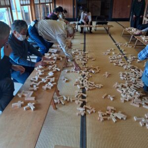 最小のコアは、25×25㎜。この倍数でそれぞれの寸法が出来ています。平面でも立体でも比率を決めて遊ぶパズルです。パズルのパ・積み木のミ・ドミノのノ