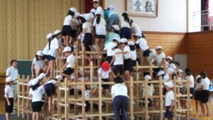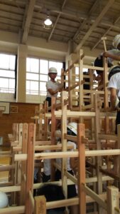 郡上八幡の小学校にて。これだけの子供たちが上っても大丈夫。