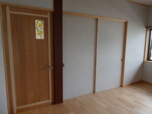 KIT邸 2026年2月10日 最終更新日時 : 2026年2月10日 川村工務店 農村地域に建つ、母屋2階の改修工事。 間取り変更と断熱改修、バリアフリー工事を行いました。 古建具も修理し再利用しました。 - 令和7年施工 -