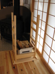 室内で二日分程度の薪を置いておく棚。