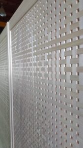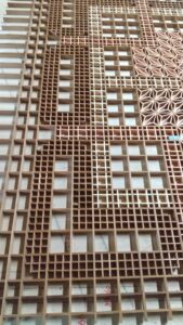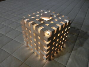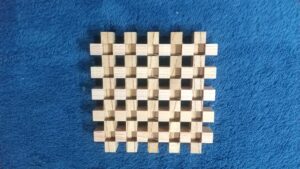両面へこみがある組子です。2種類の広葉樹で組んでいます。
