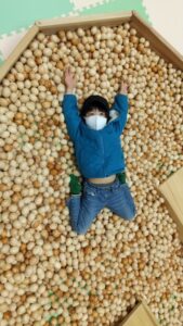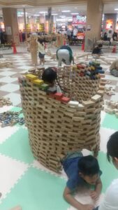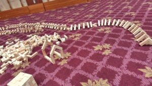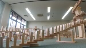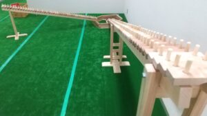 ドミノのしかけです。上っていったり下ったり。10歳の子供たちに何故ドミノが倒れていくのかお話しできますか?